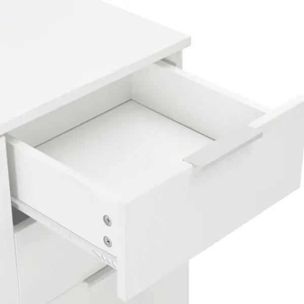 Med sitt praktiska förvaringsutrymme blir skänken ett perfekt komplement i alla rum. Eftersom den är tillverkad i spånskiva med en högglansig finish är byrån vacker och oerhört stadig och stabil. Dessutom är den utrustad med 2 lådor och har gott om plats för dina olika prylar, så att du kan hålla ditt rum städat. Detta förvaringsskåp i högglans är enkelt att rengöra.
