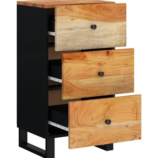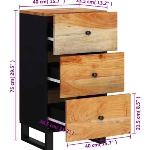 Denna klassiska skänk med ett tidlöst utseende kan bli ett perfekt tillägg i din heminredning. Massivt akaciaträ: Massivt akaciaträ är ett vackert naturmaterial. Acaciaträ är ett tropiskt lövträ, som är tätt, robust och hållbart. Rymlig förvaring: Denna skänk har gott om plats för att hålla prylar organiserade och inom räckhåll.Praktisk ovansida: Byråns ovansida har en stabil skiva att ställa snacks, drycker, vaser, fruktskålar eller prydnadssaker på.Järnben: Järnbenen på denna sovrumsmöbel säkerställer stabilitet och stabilitet. Varning:För att förhindra att den välter måste denna produkt användas tillsammans med det medföljande väggfästet.