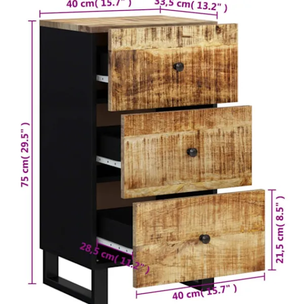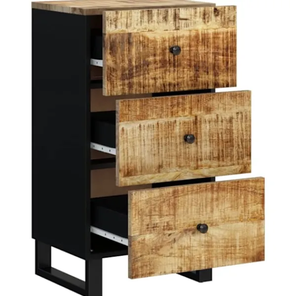 Denna klassiska skänk med ett tidlöst utseende kan bli ett perfekt tillägg i din heminredning. Massivt mangoträ: Bordet är tillverkat av massivt mangoträ, ett hårt träslag med täta fibrer. Mangoträ är inte bara starkt nog att bära tung vikt, utan står även emot tidens tand.Rymlig förvaring: Denna skänk har gott om plats för att hålla prylar organiserade och inom räckhåll.Praktisk ovansida: Byråns ovansida har en stabil skiva att ställa snacks, drycker, vaser, fruktskålar eller prydnadssaker på.Järnben: Järnbenen på denna sovrumsmöbel säkerställer stabilitet och stabilitet. Varning:För att förhindra att den välter måste denna produkt användas tillsammans med det medföljande väggfästet.
