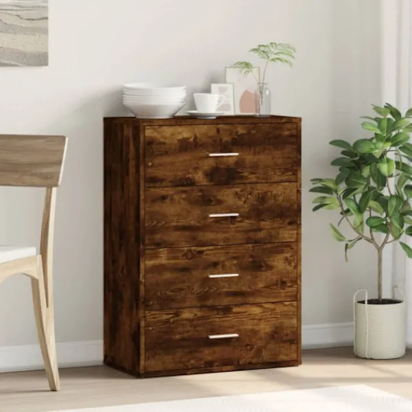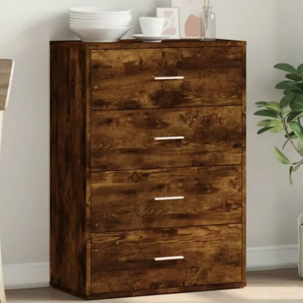 - Hållbart material: Det konstruerade träet är av exceptionell kvalitet med slät yta och är också starkt, stabilt och fuktbeständigt. Skänken är tillverkad av konstruerat trä och är lätt att rengöra med en fuktig trasa.