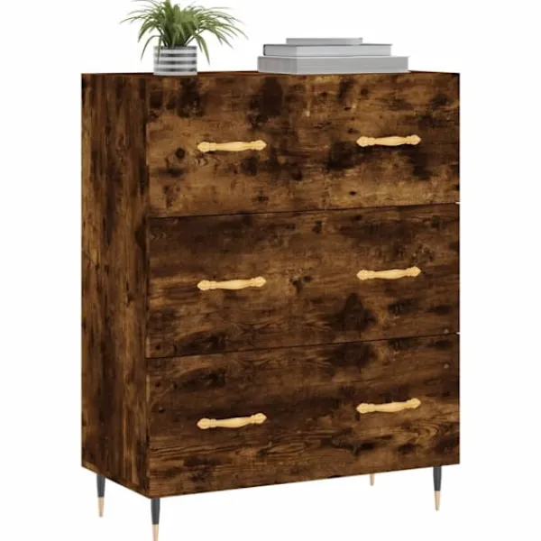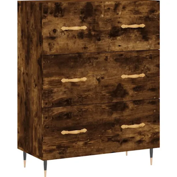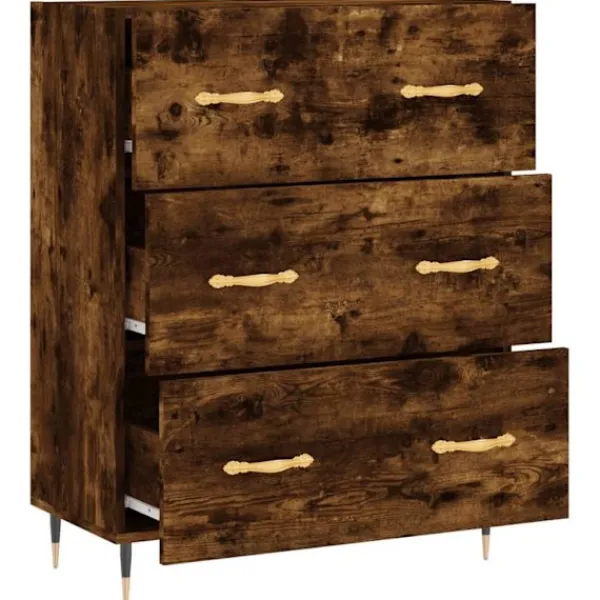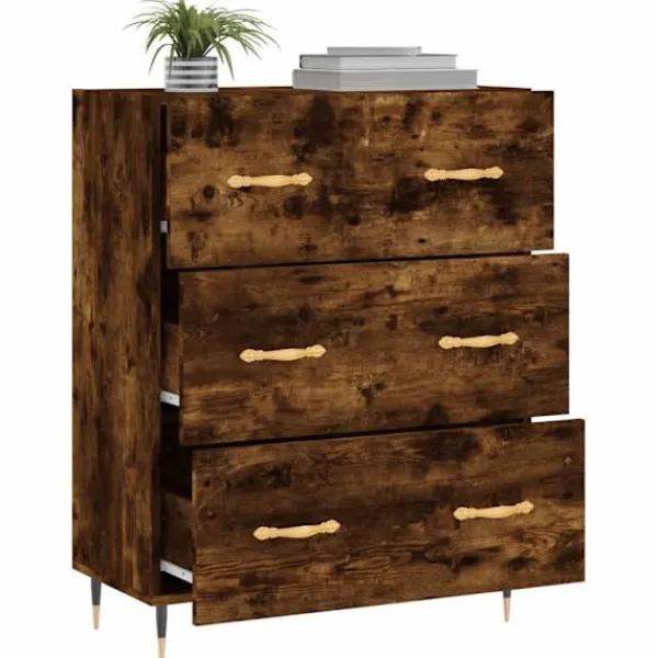 Detta klassiska skåp har en tidlös look, vilket gör det till ett perfekt komplement till ditt hem. Robust material: Det konstruerade träet är av exceptionell kvalitet med slät yta och är också starkt, stabilt och fuktbeständigt.Gott om förvaring: Byrån har 3 lådor med gott om förvaringsutrymme för att hålla dina olika saker välorganiserade och inom räckhåll.Visningsfunktion: Den robusta ovansidan är perfekt för att visa dekorativa föremål, fotoramar eller krukväxter på.Metallben: Metallbenen ger din inredning ett lugn stil samtidigt som de säkerställer stabilitet. Varning:För att förhindra att den välter måste denna produkt användas tillsammans med det medföljande väggfästet.