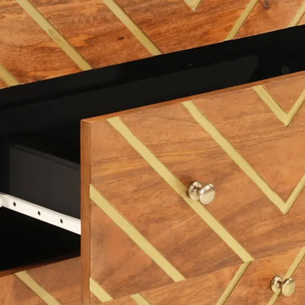 Dessa moderna skänkarna med tidlös design passar perfekt i din heminredning. Massivt mangoträ: Massivt mangoträ är ett starkt, tropiskt träslag som blir robusta möbler. Dess vackra träådringar gör varje möbel något unik. Skåpet är tillverkat av massivt mangoträ och är hållbart och stabilt.Gott om förvaring: Skåpet har gott om förvaringsutrymme för att hålla dina olika saker välorganiserade och inom räckhåll.Displayfunktion: Översidan av denna skänk är utmärkt för att visa upp dina dekorativa föremål, fotoalbum eller mindre växter.Stabila ben: Skänkens järnben säkerställer stabilitet. Varning:För att förhindra att den välter måste denna produkt användas tillsammans med det medföljande väggfästet.