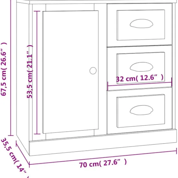 Dessa klassiska skänkar med ett tidlöst utseende kan bli ett perfekt tillägg i din heminredning. Hållbart material: Det konstruerade träet är av exceptionell kvalitet med slät yta och är också starkt, stabilt och fuktbeständigt.Gott om förvaring: Skåpet har gott om förvaringsutrymme för att hålla dina olika saker välorganiserade och inom räckhåll.Robust ovansida: Du kan också placera dina favoritfoton, dekorationer eller blommor ovanpå skänken för att berika ditt rum. Varning:För att förhindra att det välter måste denna produkt användas tillsammans med det medföljande väggfästet.