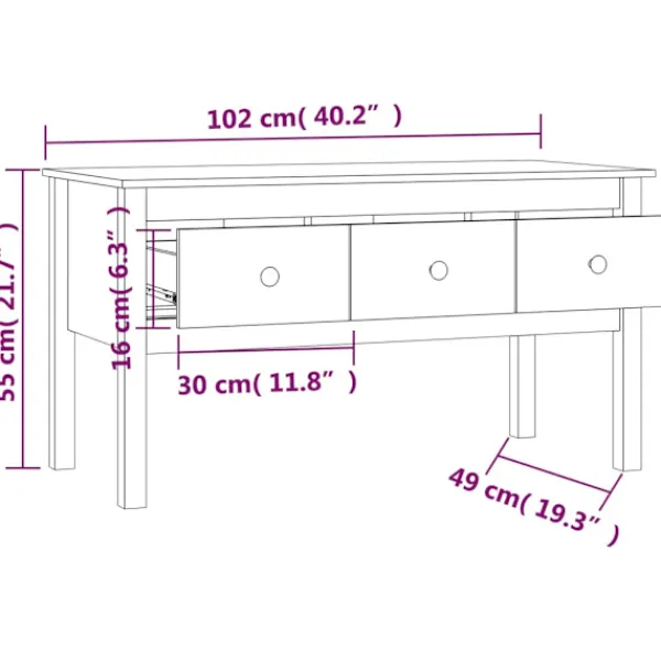 Detta klassiska soffbord i trä skapar mer förvaringsutrymme och blir ett vackert tillskott i ditt hem. Massivt furuträ: Massivt furuträ är ett vackert naturmaterial. Furuträ har raka fibrer, och knutarna ger materialet sin rustika utstrålning. Stabil ram: Träramen säkerställer robusthet och stabilitet. Gott om förvaring: Skänken har 3 lådor, med gott om förvaringsutrymme för att hålla dina olika saker välorganiserade och inom räckhåll. Robust bordsskiva Bordsskivan är perfekt för att visa dina favoritdekorationer, tavelramar och krukväxter. Varning:För att förhindra att den välter måste denna produkt användas med den medföljande monteringsanordningen för vägg Observera:Varje produkt levereras med en monteringsmanual i lådan för enkel montering.