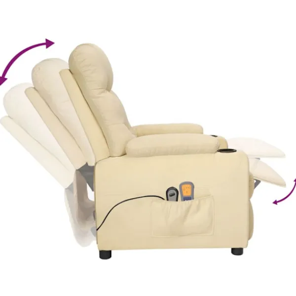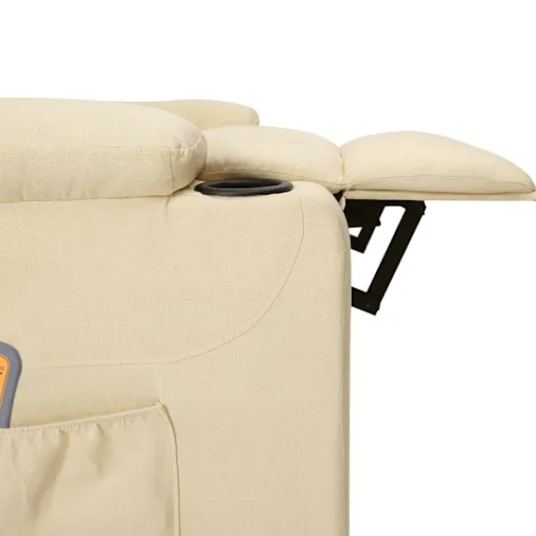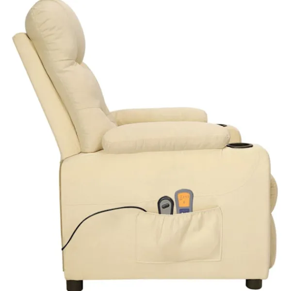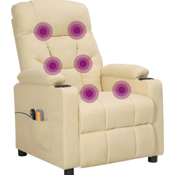 Luta dig tillbaka och koppla av i denna mycket bekväma massagefåtölj! Elektrisk justering : Denna vilofåtölj är utrustad med en elektrisk motor för justering av ryggstöd och fotstöd. Den har 3 justerbara lägen, vilket gör att du enkelt kan justera ryggstödet och fotstödet med den medföljande handkontrollen med två knappar enligt din komfort.Vibration: De 6 massagepunkterna låter dig uppleva en bättre riktad massage. Kontrollen låter dig välja olika massageprogram. Massagefunktionen drivs av USB-kontakten, men den certifierade 5V USB-strömkällan ingår inte.Bekväm sittupplevelse: Det tjockt vadderade sätet, ryggstödet och de breda armstöden täckta i tyg bidrar till en mysig och varm känsla, vilket gör att du känner dig omfamnad när du sitter. Tyget är slitstarkt, andas och har ett enkelt och rent utseende.Massiv och stabil ram: Ramen av trä och metall bidrar till en stark och stabil konstruktion. Denna fällbara fåtölj är bekväm och hållbar.