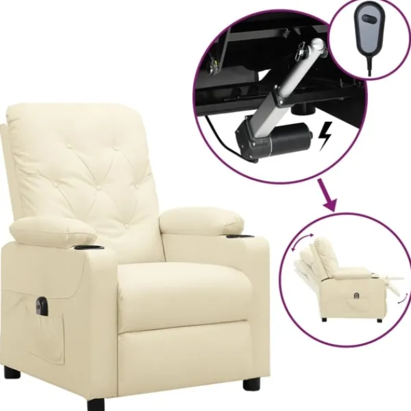Luta dig tillbaka och koppla av i den här mycket bekväma reclinerfåtölj! Elektrisk justering : Denna vilofåtölj är utrustad med en elektrisk motor för justering av ryggstöd och fotstöd. Den har 3 justerbara lägen, vilket gör att du enkelt kan justera ryggstödet och fotstödet med den medföljande handkontrollen med två knappar enligt din komfort.Bekväm sittupplevelse: Det tjockt vadderade sätet, ryggstödet och de breda armstöden täckta i konstläder ger en mysig och varm känsla, vilket gör att du känner dig omfamnad när du sitter. Konstläder är ett högst slitstarkt material. Den är fläckbeständig, vilket gör den enkel att rengöra med en fuktig trasa. Den släta ytan har också ett lyxigt utseende.Massiv och stabil ram: Ramen av trä och metall bidrar till en stark och stabil konstruktion. Denna fällbara fåtölj är bekväm och hållbar.