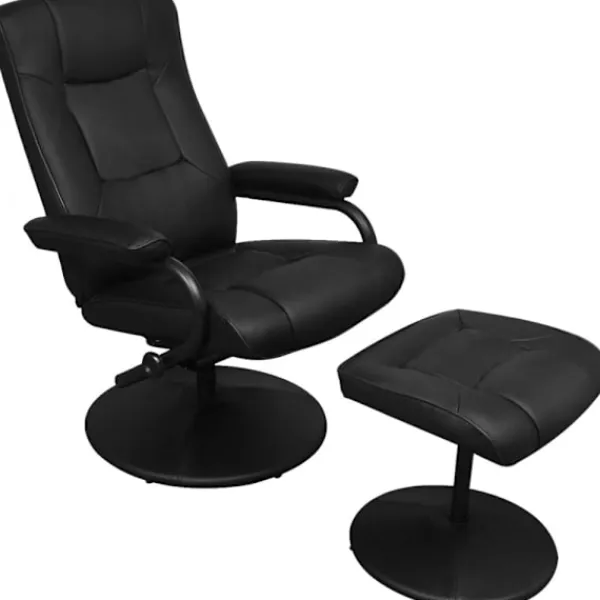 Denna TV-fåtölj i konstläder med sin kompletterande fotpall kombinerar stil och funktionalitet.