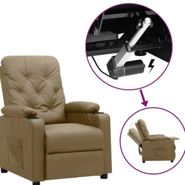 - Eldriven lyftfunktion: Denna reclinerfåtölj är utrustad med en elektrisk motor för lyftfunktion. Tack vare funktionen som skjuter upp hela stolen kan du enkelt ställa dig upp utan att lägga stress på rygg och knä med en 2-knappars handkontroll.