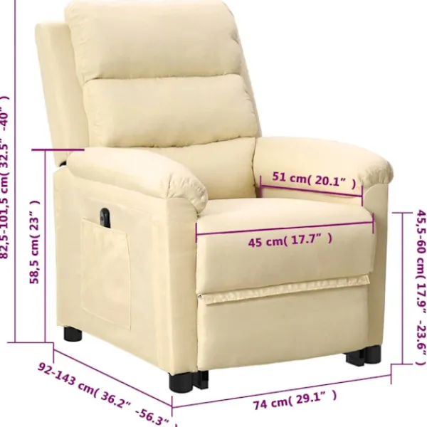 Luta dig tillbaka och koppla av i den här mycket bekväma fåtölj med uppresningshjälp! Manuell lutningsfunktion: Liggstolen är speciellt utformad med 3 liggande lägen så att du kan justera ryggstödet och fotstödet manuellt enligt din komfort.Eldriven lyftfunktion: Denna reclinerfåtölj är utrustad med en elektrisk motor för lyftfunktion. Tack vare funktionen som skjuter upp hela stolen kan du enkelt ställa dig upp utan att lägga stress på rygg och knä med en 2-knappars handkontroll.Bekväm sittupplevelse: Det tjockt vadderade sätet, ryggstödet och de breda armstöden täckta i tyg bidrar till en mysig och varm känsla, vilket gör att du känner dig omfamnad när du sitter. Tyget är slitstarkt, andas och har ett enkelt och rent utseende.Massiv och stabil ram: Ramen av trä och metall bidrar till en stark och stabil konstruktion. Denna fällbara fåtölj är bekväm och hållbar.