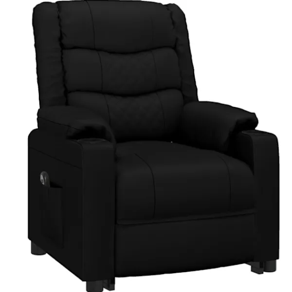 Luta dig tillbaka och koppla av i den här mycket bekväma fåtölj med uppresningshjälp! Manuell lutningsfunktion: Liggstolen är speciellt utformad med 3 liggande lägen så att du kan justera ryggstödet och fotstödet manuellt enligt din komfort.Eldriven lyftfunktion: Denna reclinerfåtölj är utrustad med en elektrisk motor för lyftfunktion. Tack vare funktionen som skjuter upp hela stolen kan du enkelt ställa dig upp utan att lägga stress på rygg och knä med en 2-knappars handkontroll.Bekväm sittupplevelse: Det tjockt vadderade sätet, ryggstödet och de breda armstöden täckta i konstläder ger en mysig och varm känsla, vilket gör att du känner dig omfamnad när du sitter. Konstläder är ett högst slitstarkt material. Den är fläckbeständig, vilket gör den enkel att rengöra med en fuktig trasa. Den släta ytan har också ett lyxigt utseende.Massiv och stabil ram: Ramen av trä och metall bidrar till en stark och stabil konstruktion. Denna fällbara fåtölj är bekväm och hållbar.