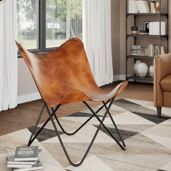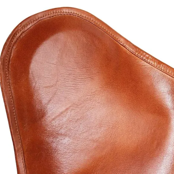 Vår fladdermusfåtölj i vintagestil av äkta läder är ergonomiskt utformad för fullständig avkoppling efter en hektisk dag. Dess ikoniska design är mycket populär och kommer att passa in i alla miljöer. Denna klassiska fladdermusfåtölj i äkta läder har en böjd rygg och sits, vilket garanterar att din kropp har tillräckligt stöd för högsta komfort. Denna fladdermusfåtölj är tillverkad i äkta läder och är slitstark samt byggd för att hålla. Fåtöljens fyra hörn är även de förstärkta med äkta läder. Den robusta pulverlackerade järnramen ger stabilitet och hållbarhet. Fåtöljen är lätt och bekväm. Var vänlig observera: Färgerna kan skifta från produkt till produkt, vilket gör varje fåtölj unik; leveransen är slumpmässig.