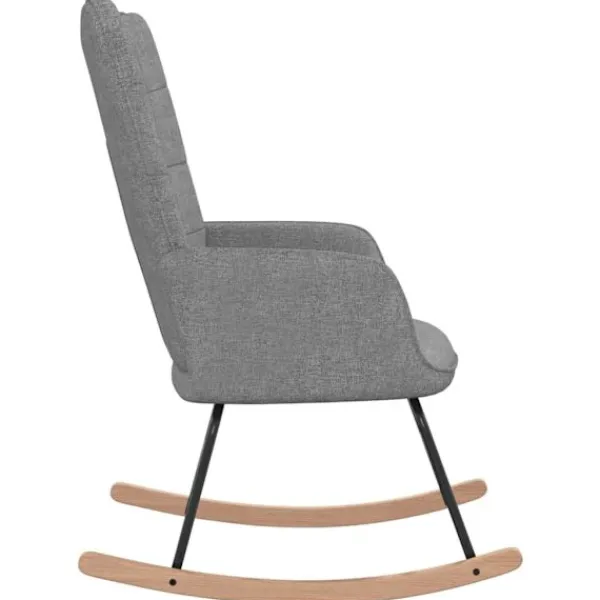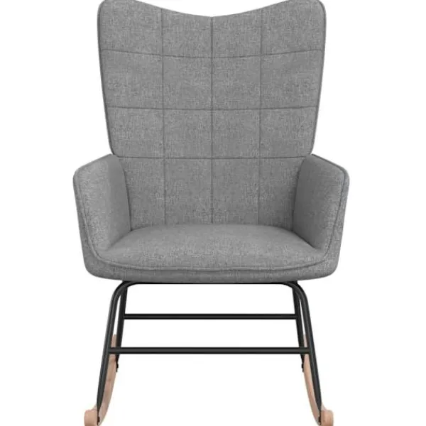 Denna gungstol har en chic och elegant design och blir en modern detalj i din inredning. Fåtöljen har rutmönster i ryggen och är estetiskt tilltalande. Tack vare den skumfyllda klädseln i mjukt tyg kan du sitta mycket bekvämt. Tack vare skenorna välter den inte lätt. Eftersom den har en ram och ben i stål, och gungskena i trä, är stolen stabil och hållbar.