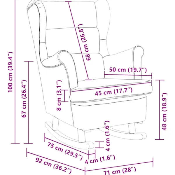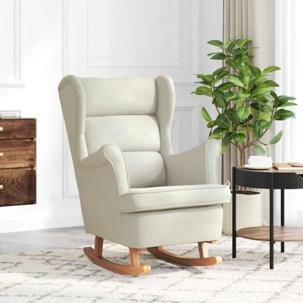 Gungfåtöljen är en härlig kombination av elegant design och funktion. Blandningen av skickligt hantverk och material gör denna fåtölj till ett måste i din heminredning. Tack vare skumfyllningen och den mjuka klädseln kan du sitta mycket bekvämt. Dessutom stöds denna vardagsrumsstol av gungben i massivt gummiträ som säkerställer extra stabilitet.