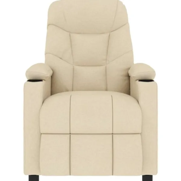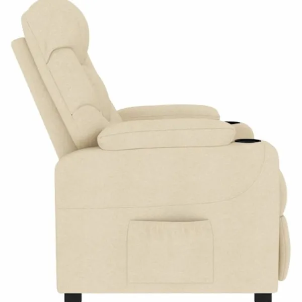 Luta dig tillbaka och koppla av i denna mycket bekväma massagefåtölj! Manuell lutningsfunktion: Liggstolen är speciellt utformad med 3 liggande lägen så att du kan justera ryggstödet och fotstödet manuellt enligt din komfort.Vibration: De 6 massagepunkterna låter dig uppleva en bättre riktad massage. Kontrollen låter dig välja olika massageprogram. Massagefunktionen drivs av USB-kontakten, men den certifierade 5V USB-strömkällan ingår inte.Bekväm sittupplevelse: Det tjockt vadderade sätet, ryggstödet och de breda armstöden täckta i tyg bidrar till en mysig och varm känsla, vilket gör att du känner dig omfamnad när du sitter. Tyget är slitstarkt, andas och har ett enkelt och rent utseende.Massiv och stabil ram: Ramen av trä och metall bidrar till en stark och stabil konstruktion. Denna fällbara fåtölj är bekväm och hållbar.