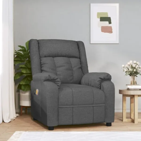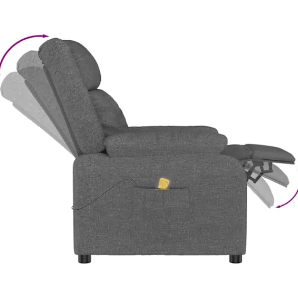 Luta dig tillbaka och koppla av i denna mycket bekväma massagefåtölj! Manuell lutningsfunktion: Liggstolen är speciellt utformad med 3 liggande lägen så att du kan justera ryggstödet och fotstödet manuellt enligt din komfort.Vibration: De 6 massagepunkterna låter dig uppleva en bättre riktad massage. Kontrollen låter dig välja olika massageprogram. Massagefunktionen drivs av USB-kontakten, men den certifierade 5V USB-strömkällan ingår inte.Bekväm sittupplevelse: Det tjockt vadderade sätet, ryggstödet och de breda armstöden täckta i tyg bidrar till en mysig och varm känsla, vilket gör att du känner dig omfamnad när du sitter. Tyget är slitstarkt, andas och har ett enkelt och rent utseende.Massiv och stabil ram: Ramen av trä och metall bidrar till en stark och stabil konstruktion. Denna fällbara fåtölj är bekväm och hållbar.