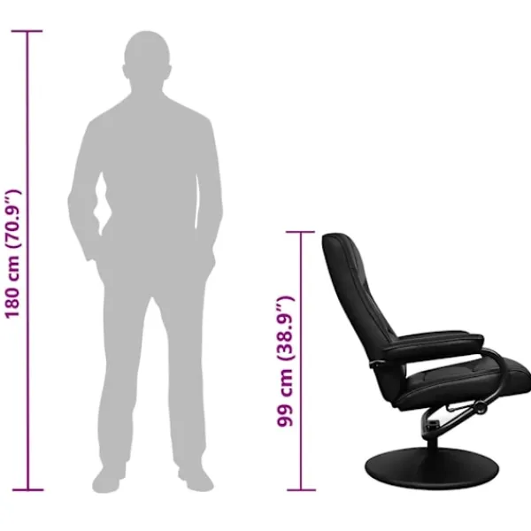 Denna TV-fåtölj i konstläder med sin kompletterande fotpall kombinerar stil och funktionalitet. Uppsättningen har en stark ram i trä och metall, fylld med högdensitetsskum och täckt med konstläder av hög kvalitet för maximal komfort. Det tjocka sätet och mjuka ryggstödet är mycket bekvämt. Dessutom kan ryggstödet fällas tillbaka och du kan lägga upp fötterna på den bekväma fotpallen. Om du vill skapa ett mysigt gömställe för att läsa, titta på TV eller bara koppla av kommer denna konstläderfåtölj väl till pass, var den än kan vara. Du kommer att älska den!