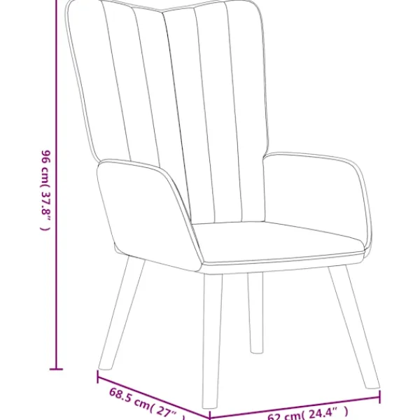 Denna vilstol blir ett fint tillskott i ditt hem. Fåtöljen med rena linjer på ryggstödet är estetiskt tilltalande. Tack vare den skumfyllda och mjuka sammeten är den mycket bekväm att sitta i. Vilstolen har en stålram och träben, vilket gör den stabil och hållbar.