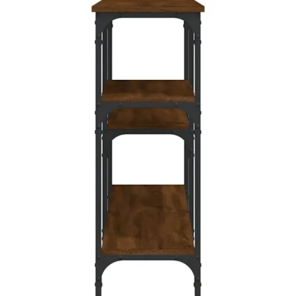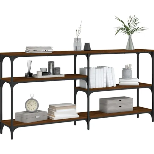 Få en elegant känsla i hallen, vardagsrummet eller entrén med detta snygga avlastningsbord. Hållbart material: Det konstruerade träet är av exceptionell kvalitet med slät yta och är också starkt, stabilt och fuktbeständigt. Med konstruerat trä som byggmaterial är soffbordet lätt att rengöra.Gott om lagringsutrymme: Hallbordet har gott om lagringsutrymme för att hålla dina tidskrifter, böcker och andra dekorativa föremål välorganiserade och inom räckhåll.Justerbara fötter: Sex justerbara fötter med plasttassar håller hallbordet balanserat på ojämnt underlag och ökar stabiliteten.Metallram: Metallramen lägger till en industriell stil till din interiör samtidigt som den garanterar hållbarhet och stabilitet. Varning:För att förhindra att den välter måste denna produkt användas tillsammans med det medföljande väggfästet.