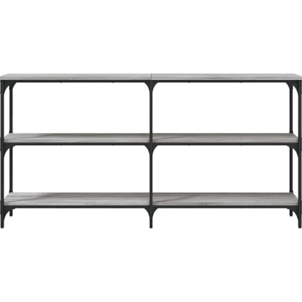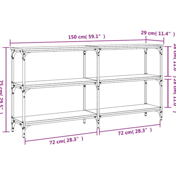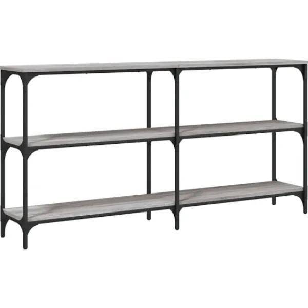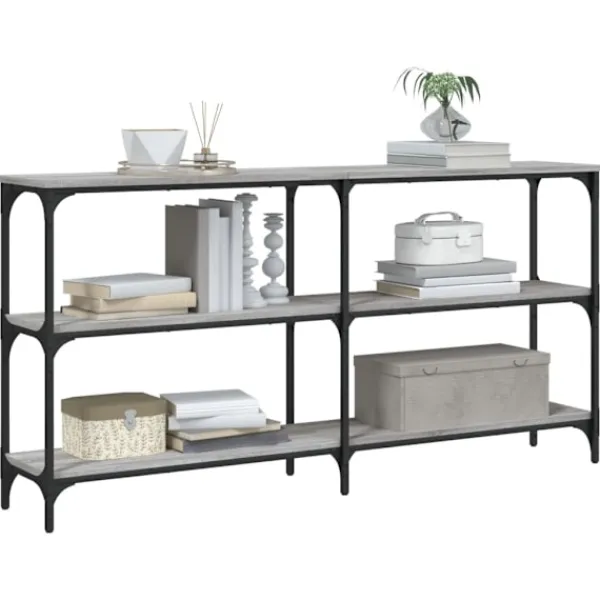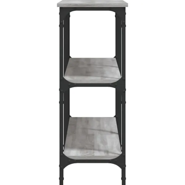 Få en elegant känsla i hallen, vardagsrummet eller entrén med detta snygga avlastningsbord. Hållbart material: Det konstruerade träet är av exceptionell kvalitet med slät yta och är också starkt, stabilt och fuktbeständigt. Med konstruerat trä som byggmaterial är soffbordet lätt att rengöra.Gott om lagringsutrymme: Hallbordet har gott om lagringsutrymme för att hålla dina tidskrifter, böcker och andra dekorativa föremål välorganiserade och inom räckhåll.Justerbara fötter: Sex justerbara fötter med plasttassar håller hallbordet balanserat på ojämnt underlag och ökar stabiliteten.Metallram: Metallramen lägger till en industriell stil till din interiör samtidigt som den garanterar hållbarhet och stabilitet. Varning:För att förhindra att den välter måste denna produkt användas tillsammans med det medföljande väggfästet.