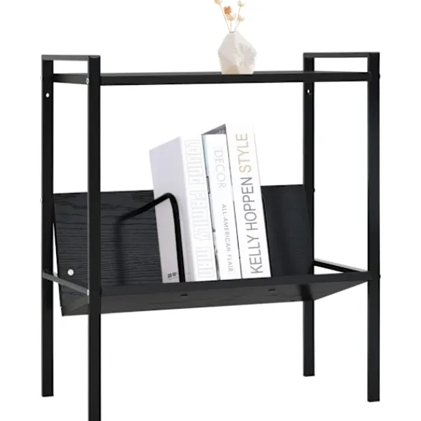 Denna bokhylla med 2 hyllplan kan användas i vardagsrummet som bokhylla eller prydnadshylla eller på uteplatsen som ett växtställ, osv. Det blir ett tidlöst tillskott i ditt hem. Hyllan är tillverkad i konstruerat trä, vilket gör den enkel att rengöra med en fuktig trasa. Den stadiga stålkonstruktionen gör den rostfri och bidrar till dess industriella stil. Tack vare dess kompakta design tar hyllan inte upp så mycket plats. Hyllan har 2 hyllplan med gott om plats för att förvara och visa upp din boksamling, blommor, cd-skivor, dvd:er och andra prydnadssaker. Vår bokhylla är även enkel att montera.