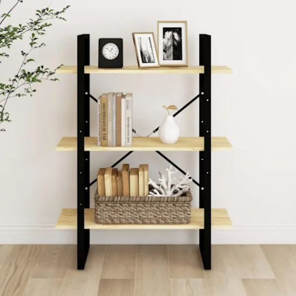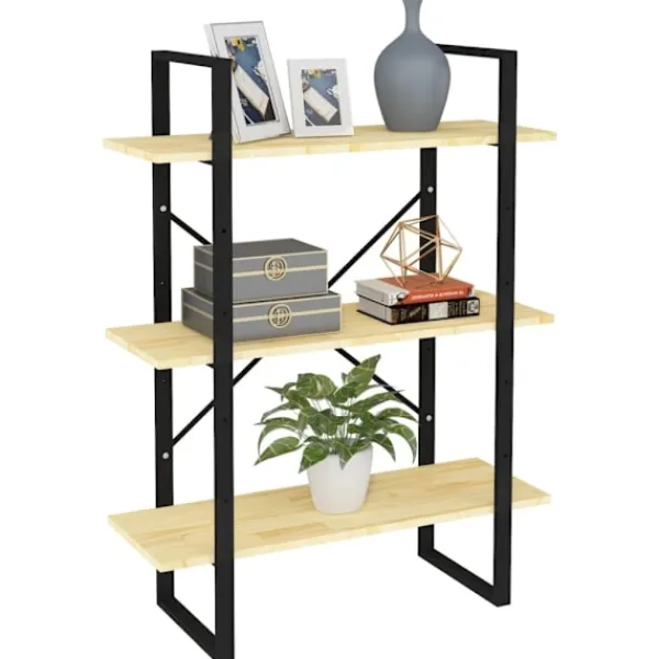 Bokhyllan är tillverkad av massivt furuträ, vilket garanterar robusthet, hållbarhet och långvarig service. Den har 3 hyllor som erbjuder gott om förvaringsutrymme för att förvara och visa dina föremål eller dekorationer. Förvaringshyllan är lätt att rengöra med en fuktig trasa.