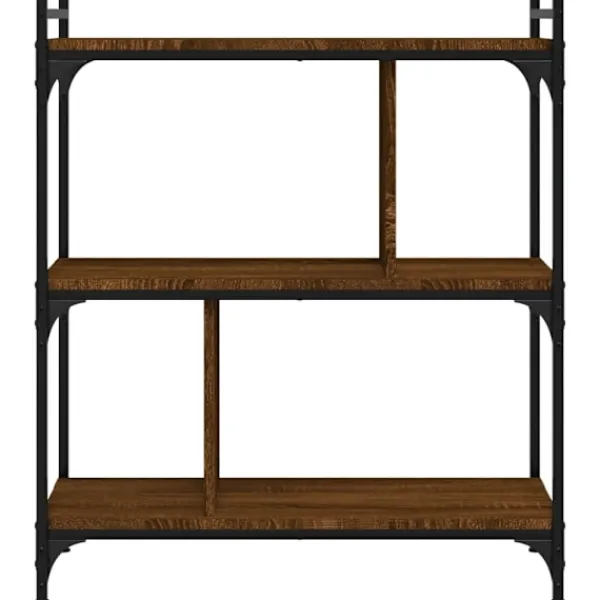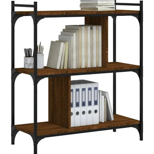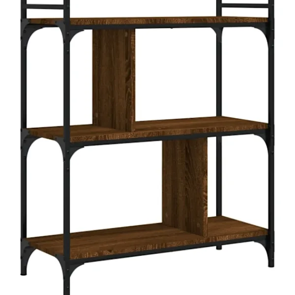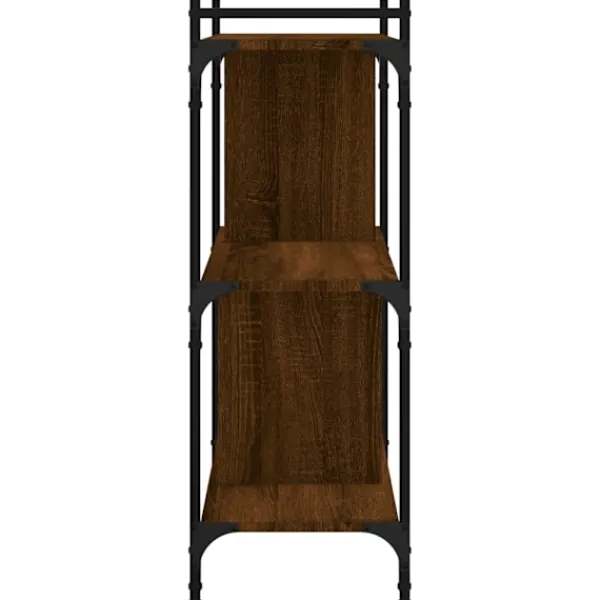 Denna bokhylla är en idealisk lösning för att organisera dina böcker och kommer att vara ett dekorativt men ändå praktiskt tillägg till din heminredning. Slitstarkt material: Det konstruerade träet är av exceptionell kvalitet med slät yta och är också starkt, stabilt och fuktbeständigt. Bokhyllan är tillverkad av konstruerat trä och är lätt att rengöra.Gott om förvaring: Bokhyllan har gott om förvaringsutrymme för att hålla dina tidskrifter, böcker och andra dekorativa föremål välorganiserade och inom räckhåll.Justerbara fötter: Fyra justerbara fötter med plasttassar håller bokhyllan balanserad på ojämnt golv och ökar stabiliteten.Metallram: Metallramen lägger till en industriell stil till din interiör samtidigt som den garanterar hållbarhet och stabilitet. Varning:För att förhindra att den välter måste denna produkt användas tillsammans med det medföljande väggfästet.