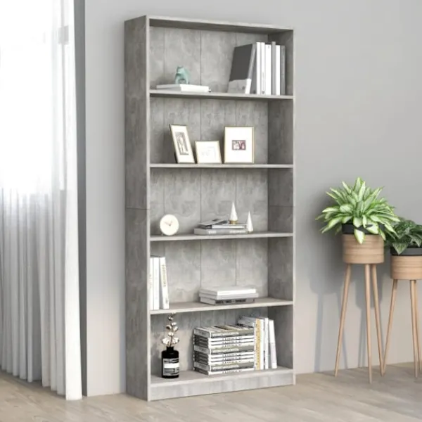 Skåpet är tillverkat av konstruerat trä, vilket säkerställer robusthet, hållbarhet och lång livslängd. Bokhyllan är designad med 5 rymliga fack med gott om lagringsutrymme för att hålla dina tidningar, böcker, DVD-skivor, multimediaenheter och andra dekorativa föremål välorganiserade och inom räckhåll. Dessutom är bokhyllan också en perfekt förvaringslösning för din hall och alla andra bostadsutrymmen.