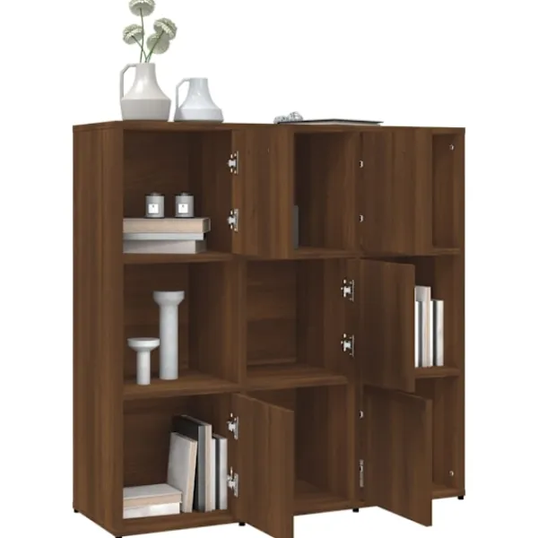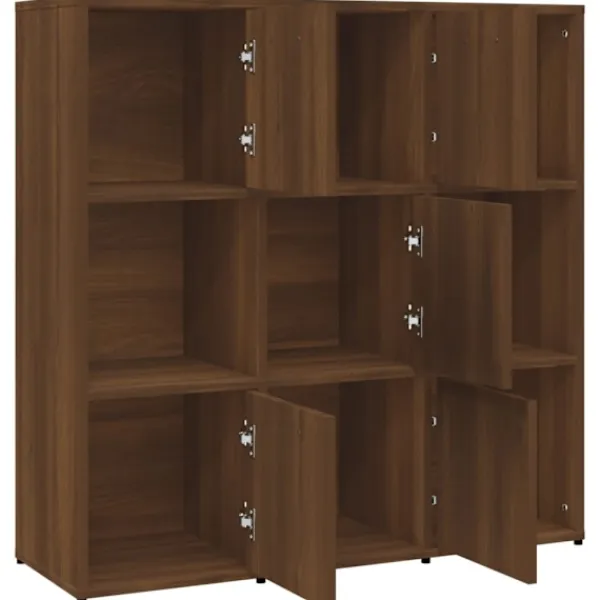 Denna bokhylla har en elegant och modern design, vilket gör den till ett både dekorativt och praktiskt tillskott i din inredning. Praktiskt material: Det konstruerade träet är av exceptionell kvalitet med slät yta och har också styrka, stabilitet samt fuktbeständighet.Gott om förvaring: Bokhyllan har 9 fack och 5 av dem med dörrar, som erbjuder gott om förvaringsutrymme för att hålla dina tidningar, böcker, DVD-skivor, multimediaenheter och andra dekorativa föremål välorganiserade och inom räckhåll.Robust ovansida: Ovansidan av denna bokhylla fungerar som en bra plats att ställa föremål som böcker och andra dekorationer. Varning:För att förhindra att den välter måste denna produkt användas med den medföljande monteringsanordningen för vägg Observera:Varje produkt levereras med en monteringsmanual i lådan för enkel montering.