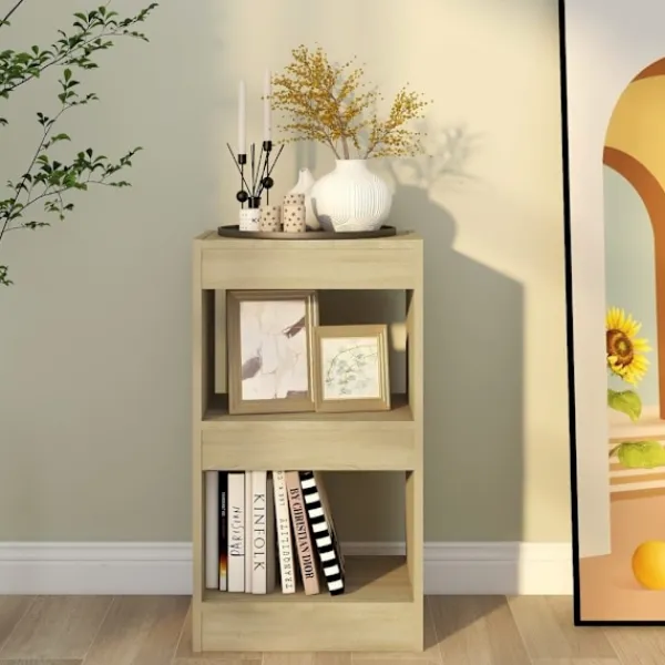 Med sin eleganta och klassiska design kommer bokhyllan att skapa en dekorativ och praktisk känsla i ditt hem. Bokhyllan har rymliga fack med gott om lagringsutrymme för att hålla dina tidningar, böcker, DVD-skivor, multimediaenheter och andra dekorativa föremål välorganiserade och inom räckhåll. Den är också robust, stabil och lätt att rengöra med en fuktig trasa. Dessutom kan den också användas som rumsavdelare, vilket gör den till ett perfekt val för din hall och alla andra vardagsrum.