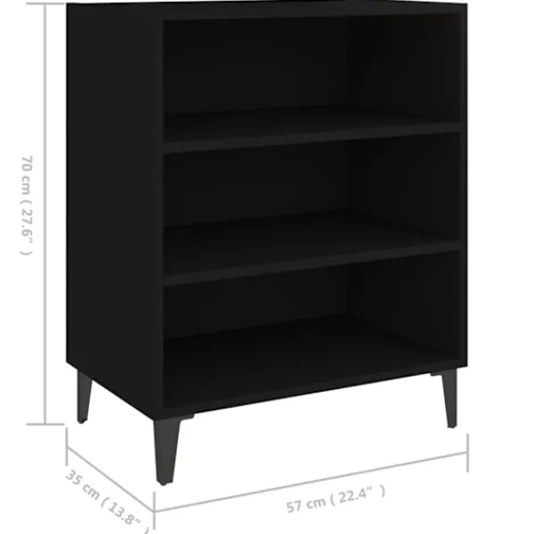 Denna skänk är ett bra komplement till ditt hem. Skåpet är tillverkat av konstruerat trä, vilket säkerställer robusthet, hållbarhet och lång livslängd. De fyra fötterna i metall bidrar till extra stabilitet. Skänken har 3 hyllor, med gott om förvaringsutrymme. Den robusta ovansidan är ideal för att visa dekorativa föremål, fotoramar eller krukväxter på. Dessutom är dessa förvaringsskåp enkla att rengöra med en fuktig trasa.