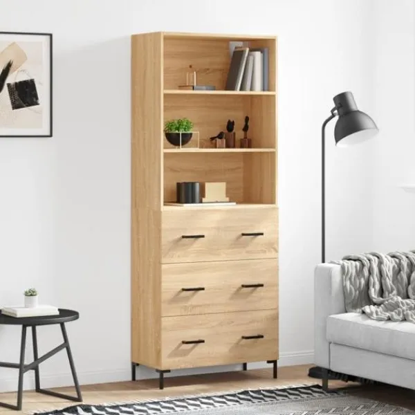 Letar du efter ett snyggt skåp till ditt hem? Detta högskåp ger din befintliga inredning en elegant charm! Hållbart material: Det konstruerade träet är av exceptionell kvalitet med slät yta och är också starkt, stabilt och fuktbeständigt.Gott om förvaring: Skåpet har gott om förvaringsutrymme för att hålla dina olika saker välorganiserade och inom räckhåll.Metallfötter: Metallfötterna ger din inredning ett lugn stil samtidigt som de säkerställer stabilitet. Varning:För att förhindra att den välter måste denna produkt användas tillsammans med det medföljande väggfästet. Bra att känna till:Skruvar och väggplugg ingår inte. Vi rekommenderar att du använder skruvar och plugg som passar dina väggar. Om du är osöker, sök professionell hjälp. Läs och följ varje steg i anvisningarna.