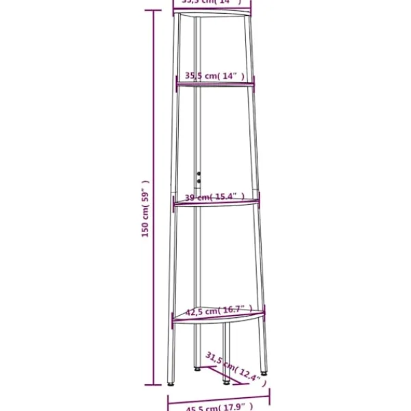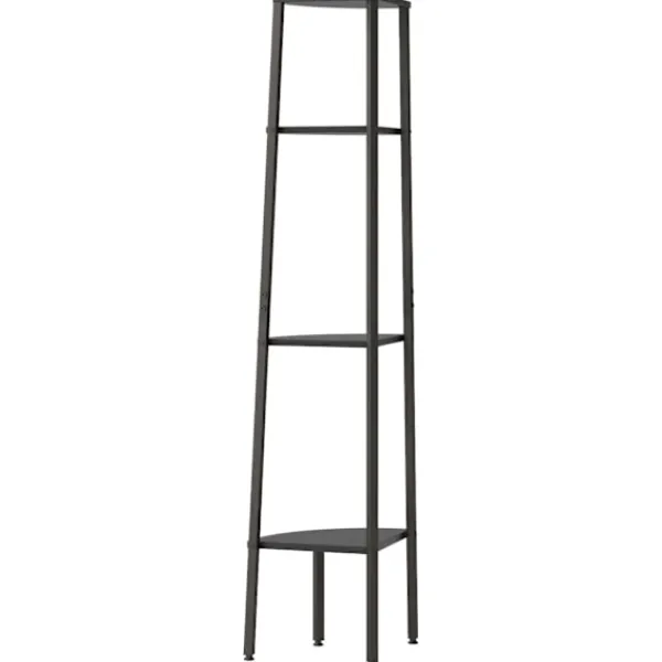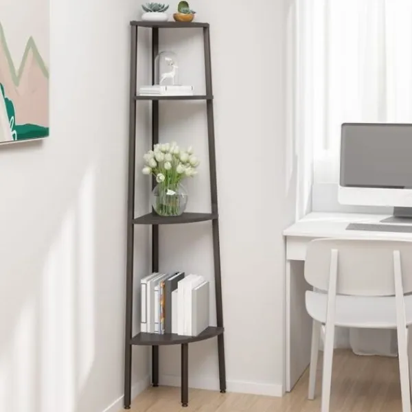 Skapa ett extra förvaringsutrymme på begränsad yta med denna 4-planshylla för hörn! Stark stålkonstruktion: Förvaringshyllan har en stark stålram som säkerställer robusthet och stabilitet.Gott om förvaringsutrymme: Bokhyllan tar lite plats samtidigt som den har gott om utrymme för dina böcker, växter, tavelramar och diverse saker.Bred tillämpning: Den praktiska hyllan passar perfekt för ditt hem och kontor, inklusive ditt vardagsrum, badrum, sovrum, balkong etc. VARNING:För att förhindra att den välter måste denna produkt användas tillsammans med det medföljande väggfästet.Observera:Varje produkt levereras med en monteringsmanual i lådan för enkel montering.