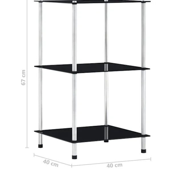 Tillför stil i ditt hem med vår moderna och praktiska hylla i glas! Hyllan har tre hyllplan med stort förvaringsutrymme. Du kan använda den mångsidiga hyllan i vardagsrummet eller på kontoret för att visa upp dina samlarsaker, fotoramar, krukväxter eller i badrummet för att hålla de viktigaste sakerna organiserade. Denna hylla är tillverkad av tjockt härdat glas och slitstarkt rostfritt stål och är mycket stadig och säker. Den släta ytan kan dessutom enkelt rengöras med en fuktig trasa. Vår hylla är enkel att montera.