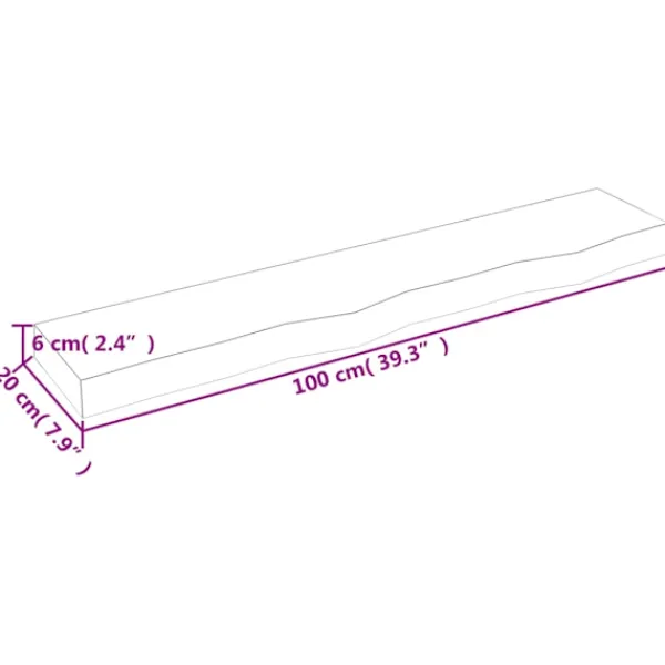 Behöver du mer lagringsalternativ men inte har något utrymme? Detta hyllplan med en rustik stil är den perfekta lösningen. Hållbar konstruktion: Hyllplanet är gjord av massiv ek, vilket är ett vackert naturmaterial. Ekträ har en mellanbrun färg och täta fibrer, vilket bidrar till dess unika utseende.Mångsidig: Förutom som hyllplan kan denna bänkskiva kombineras med olika baser enligt behov. Den kan användas som hylla, badrumsskiva, skåpskiva, skrivbordsskiva, bordsskiva med mera.Obehandlad yta: Eftersom hyllan är tillverkad av massiv ek utan finish kan du behålla dess naturliga färg, men också måla eller lacka den som du vill.Handgjord med slipad kant: Denna hyllskiva är handgjord med en slipad kant. På grund av att kvistarna, sprickorna, de svagt böjda formerna och färgnyanserna är en del av ekträet, har varje hylla sitt eget unika utseende. Leveransen är slumpmässig, vilket säkerställer varje produkts exklusivitet och individualitet. Bra att känna till:Som en naturlig produkt kan trä uppvisa kvistar och defekter som vi fyller med svart fyllning för att säkerställa ett jämnt utseende.