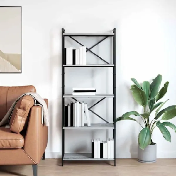 - Trähyllor i bra kvalitet: Bokhyllan är gjord med konstruerat trä, vilket gör den hållbar och lätt att ta hand om. Den slitstarka ytan passar perfekt för både dekoration och vardagliga saker.