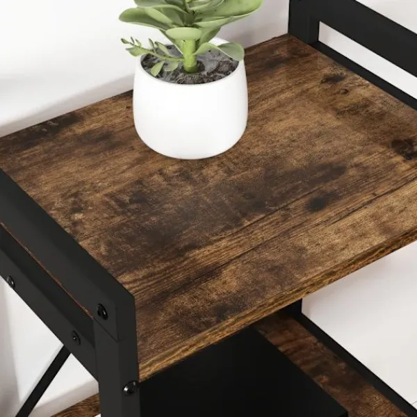 - Stabil svart stålrörsram: Ramen är gjord av kraftigt stål med en stilren svart finish, vilket ger både styrka och stil. Den robusta konstruktionen håller upp vikten av många saker och ser till att hyllan är stabil.
