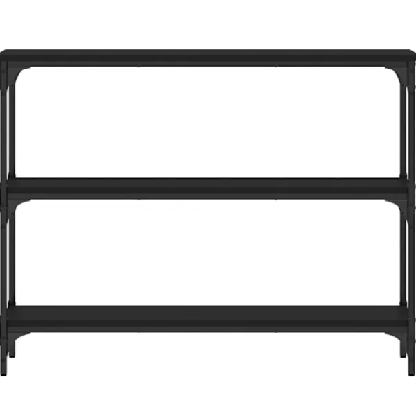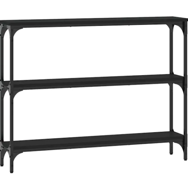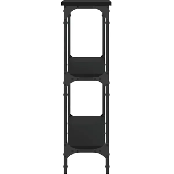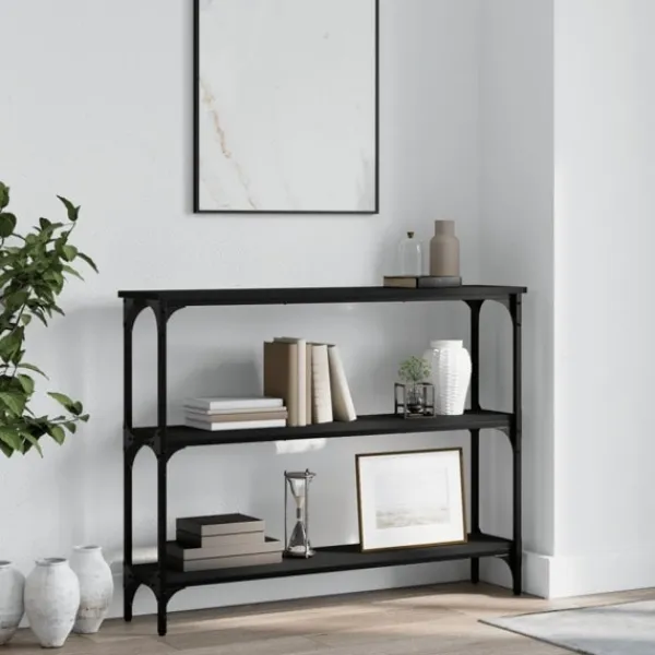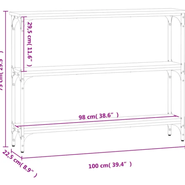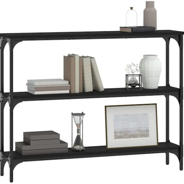 Få en elegant känsla i hallen, vardagsrummet eller entrén med detta snygga avlastningsbord. Hållbart material: Det konstruerade träet är av exceptionell kvalitet med slät yta och är också starkt, stabilt och fuktbeständigt. Med konstruerat trä som byggmaterial är soffbordet lätt att rengöra.Gott om lagringsutrymme: Hallbordet har gott om lagringsutrymme för att hålla dina tidskrifter, böcker och andra dekorativa föremål välorganiserade och inom räckhåll.Justerbara fötter: Fyra justerbara fötter med plasttassar håller hallbordet balanserat på ojämnt underlag och ökar stabiliteten.Metallram: Metallramen lägger till en industriell stil till din interiör samtidigt som den garanterar hållbarhet och stabilitet. Varning:För att förhindra att den välter måste denna produkt användas tillsammans med det medföljande väggfästet.