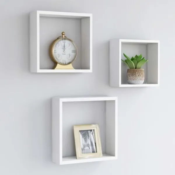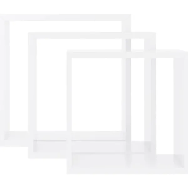 Denna uppsättning med 3 kubformade vägghyllor blir ett blickfång i ditt rum. Dessa kubformade hyllor är tillverkade i MDF som är stabilt och hållbart. Dessa hörnhyllor har ett osynligt monteringssystem och är enkla att montera. De är en perfekt plats att ställa föremål som priser, böcker, samlarsaker, prydnader, osv. Hörnhyllorna passar de flesta inredningar och förvandlar enkelt en tom vägg till en inredningsdetalj!