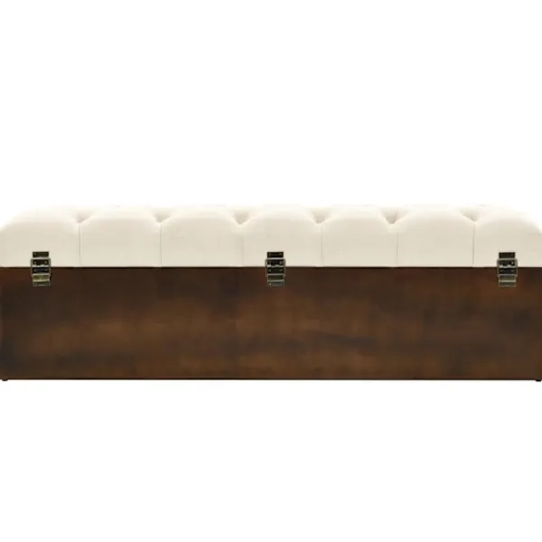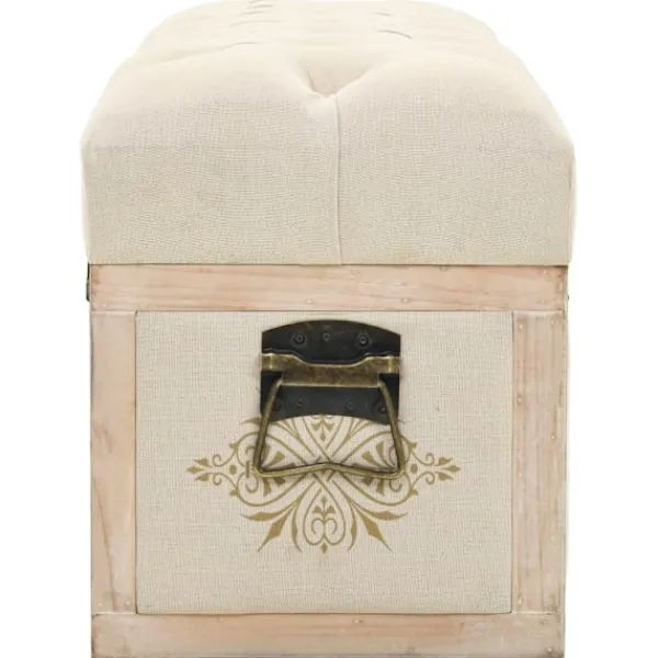 Denna eleganta förvaringsbänk blir ett unikt tillskott till din inredning med sin klassiska design. Den kan också användas som en puff eller förvaringslåda. Den bekväma och vackra bänken är tillverkad av MDF och massivt granträ. Den har en stoppad sits som är klädd i ett modernt tyg. Den har gott om plats för att förvara en mängd olika föremål utom synhåll men inom räckhåll. Tack vare sina slitstarka handtag kan förvaringslådan också enkelt flyttas i ditt rum.