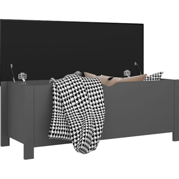 Denna förvaringsbänk blir ett praktiskt blickfång i ditt hem. Lådan har gott om plats för dina saker. Den har en dyna ovanpå så att den även blir en bekväm bänk att sitta på. Dessutom är förvaringskistan lätt att rengöra med en fuktig trasa.
