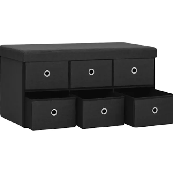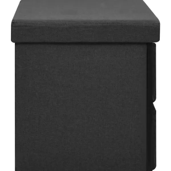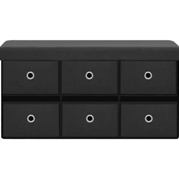 Denna mångsidiga och mjuka förvaringsbänk har en mysig design som passar alla inredningar. Den kan också användas som en extra sittplats i ditt hem. Förvaringsbänken är tillverkad i MDF och är klädd i konstlinne som är hållbart och stadigt. Förvaringsbänken är klädd med skum och är bekväm att sitta på. Den har 6 lådor med gott om förvaringsplats för att hålla olika föremål ur sikt men inom räckhåll. När den inte används kan den fällas ihop för att spara plats.