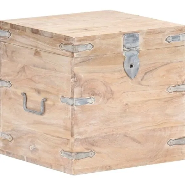 Träkistan blir en enkel detalj i din heminredning och ger dig plats att förvara dina saker. Kistan är tillverkad i massivt akaciaträ, vilket gör den stabil och hållbar. Den har ett lås på framsidan och två handtag på sidan som gör den enkel att lyfta. Förvaringslådan med platt ovansida kan även användas som sängbord. Hantverket och de vackra träådringarna gör varje möbel unik och något olik nästa. OBS: Färger och ådringar varierar från möbel till möbel, vilket gör varje produkt unik. Leveransen är slumpartad. Leveransen är slumpmässig, vilket säkerställer varje produkts exklusivitet och individualitet.