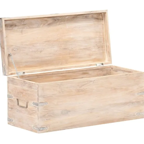Kistan är tillverkad i massivt akaciaträ, vilket gör den stabil och hållbar. Den har ett lås på framsidan och två handtag på sidan som gör den enkel att lyfta. Förvaringslådan med platt ovansida kan även användas som hallbänk. Hantverket och de vackra träådringarna gör varje möbel unik och något olik nästa.