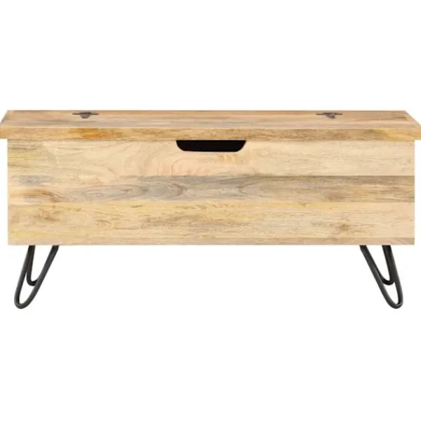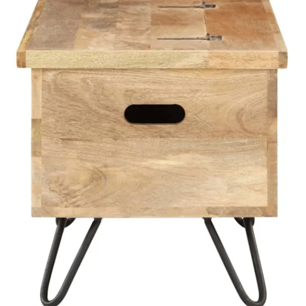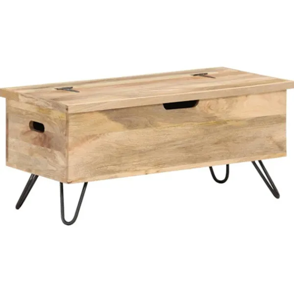 Denna smarta träkista blir en enkel detalj i din heminredning och ger dig plats att förvara dina saker såsom kläder, tidningar, böcker, leksaker, verktyg och annat. Kistan är tillverkad i massivt mangoträ, som är ett tropiskt lövträ vilket gör den stabil och hållbar. Den har ett lås på framsidan och två handtag på sidan som gör den enkel att lyfta. Stålbenen bidrar till extra stabilitet. Hantverket och de vackra träådringarna gör varje möbel unik och något olik nästa. OBS: Färger och ådringar varierar från möbel till möbel, vilket gör varje produkt unik. Leveransen är slumpartad. Leveransen är slumpmässig, vilket säkerställer varje produkts exklusivitet och individualitet.