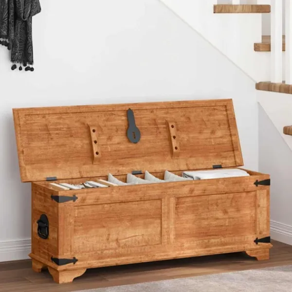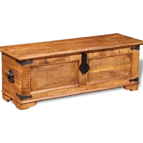 Denna grova förvaringskista i mangoträ är ett tidlöst tillbehör för ditt hem, och kommer att ge dig gott om lagringsutrymme samt hjälpa dig att hålla dina saker i ordning. Denna förvaringskista är helt handgjord av massivt trä, vilket innebär att varje bit är unik och skiljer sig något från den förra. Det grova mangoträet är massivt, stabilt, hållbart och vackert. Viktig notering: Färger varierar från del till del, vilket gör alla våra förvaringskistor unika; leveransen är slumpartad.