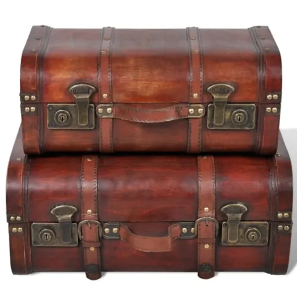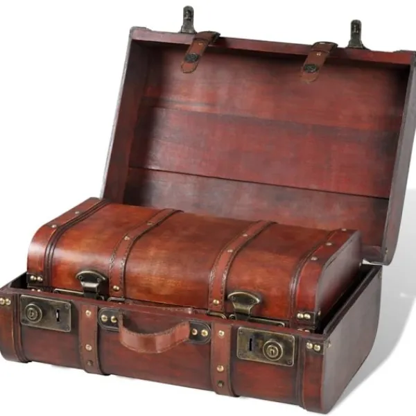 Vår fantastiska skattkista/förvaringsväska kommer att ge ditt rum en vintageretrostil! Det vackra utförandet tillsammans med sin vintage design gör det till en vacker mittpunkt i ditt rum. Förutom de dekorativa funktionerna, ger kistorna ett perfekt förvaringsutrymme för kläder, sängkläder, böcker och allt du kan tänka dig. Varje kista har två spärrar på framsidan för att enkelt kunna öppna och stänga, de har även ett handtag för transport. Varje förvaringskista är ytbelagd i hög standard. Det kommer att bli ett trevligt tillägg i ditt hem i flera år. Vid leverans ingår 2 x träkistor.