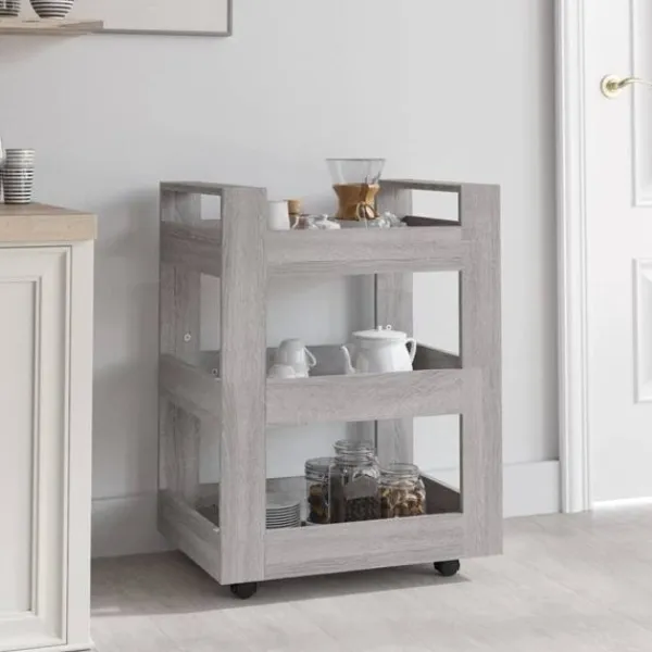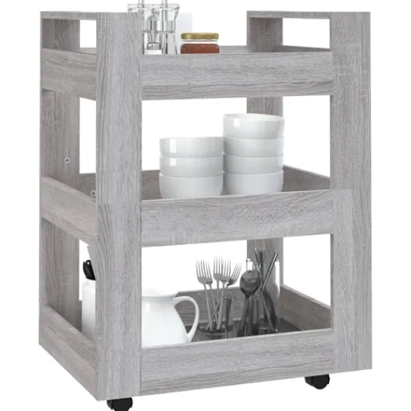 Med denna rymliga köksvagn kan du enkelt ordna saker för att göra ditt kök städat på ett ögonblick. Hållbart material: Det konstruerade träet är av exceptionell kvalitet med slät yta och är också starkt, stabilt och fuktbeständigt. Köksvagnen är tillverkad av konstruerat trä och är lätt att rengöra.Gott om förvaringsutrymme: Denna grönsaksvagn har 3 hyllor för att hålla skålar och tallrikar för enkel åtkomst.Praktiska hjul: Vagnen är utformad med 4 hjul, vilket gör det enkelt för dig att flytta och använda denna förvaringsvagn var du vill. Observera:Varje produkt levereras med en monteringsmanual i lådan för enkel montering.