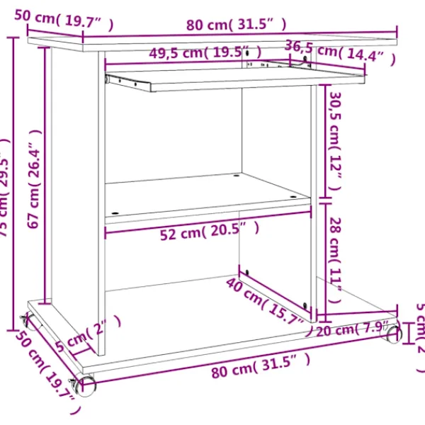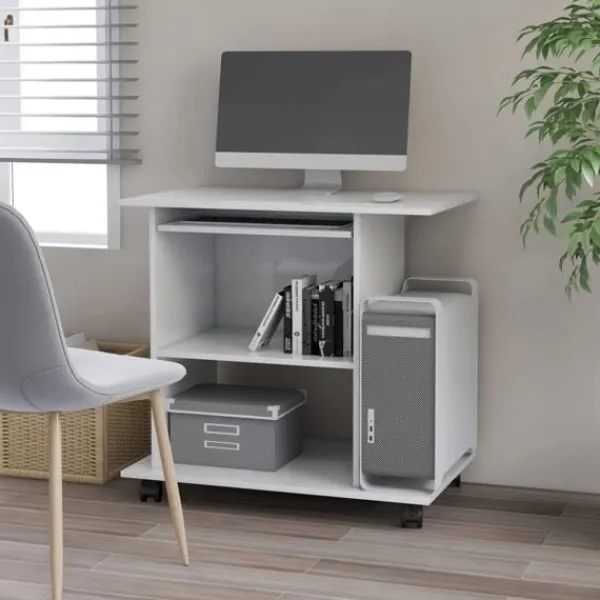 Detta kompakta bord för datorer är utformat för att spara plats och kommer att bli ett riktigt blickfång i ditt rum tack vare sitt moderna och eleganta utseende. Den generösa arbetsytan gör att du kan använda din dator och skrivmaterial på ett bekvämt sätt. Bordet är utformat med en utdragbar skiva för tangentbordet och en speciell hylla för själva datorn och 2 hyllor för datortillbehör. Detta arbetsbord, tillverkat av konstruerat trä, kommer garanterat att hålla i åratal. Dessutom är de installerade hjulen utformade för enkel mobilitet. Skrivbordet är även enkelt att montera.