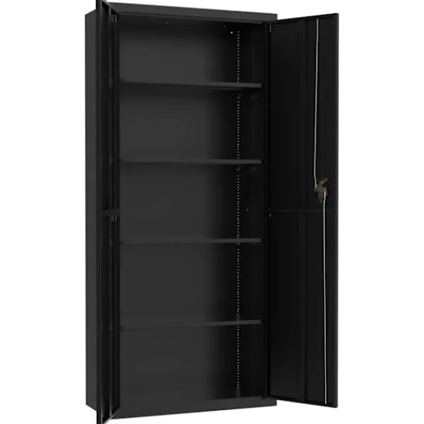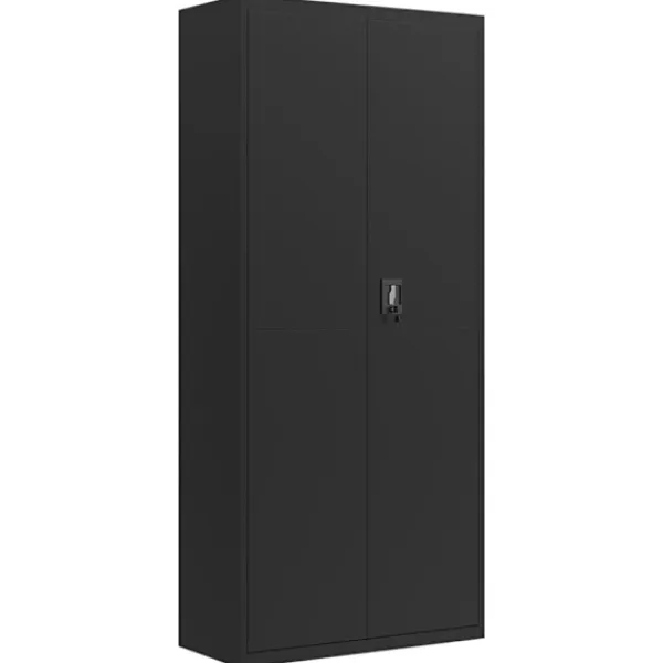 Detta extra höga dokumentskåp har en enkel men stilren design och blir ett riktigt bra val för att sortera och förvara dina dokument. Tåligt material: Stål är ett exceptionellt hårt och starkt material. Det är mycket robust och stabilt. Pulverlacken på stålytan skapar ett skyddande skikt mot rost, korrosion och slitage. Då dokumentskåpet är tillverkad av pulverlackerat stål, är det också lätt att rengöra och underhålla.Justerbara hyllor: Förvaringsskåpet har 4 justerbara hyllor, så att du kan sortera dina filer i olika kategorier.Gott om förvaringsutrymme: Detta kontorsskåp ger gott om utrymme för att förvara dina filer och andra kontorsmaterial.Låsbart system: Denna låsbara design garanterar att filer och viktiga dokument är i säkert förvar. Varning:För att förhindra att den välter måste denna produkt användas tillsammans med det medföljande väggfästet.