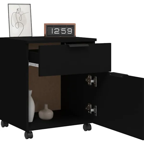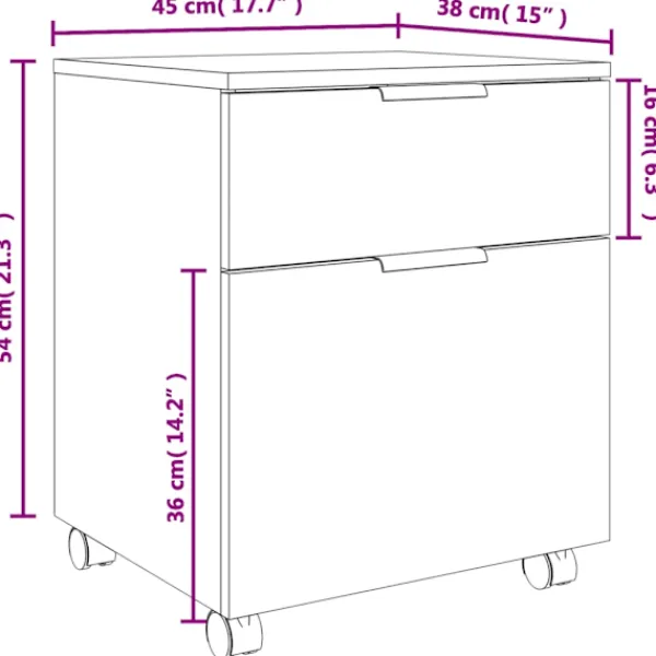 Detta klassiska dokumentskåp har svänghjul för enkel förflyttning och det har tillräckligt med plats för dina drycker, tidningar och prydnadssaker. Praktiskt material: Det konstruerade träet är av exceptionell kvalitet med slät yta och är också starkt, stabilt och motståndskraftigt mot fukt.Gott om förvaringsutrymme: Detta skåp med två lådor har gott om förvaringsutrymme för att hålla dina tillhörigheter organiserade och inom räckhåll.Displayfunktion: Den översta delen har en stabil yta där du kan placera din dricka, böcker eller dekorativa föremål.Lätt att flytta: Kontorsskåp kan lätt flyttas tack vare de medföljande fyra svänghjulen. 2 av hjulen är också låsbara, vilket håller skåpet på plats och ger stabilitet.